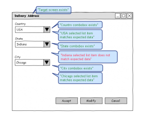 GUI Screen Verification test flow is static: no interactions with application under test required. It consists of a sequence of simple observations and assertions.