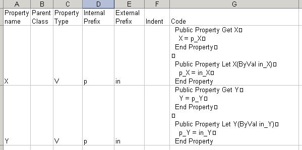 Generate code for Property Let / Property Get / Property Set methods