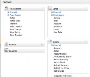 Structure and navigation components in Great Plains application are presented by .NET form hosting web-page type panel that renders web-type GUI objects. Objects belong to System.Windows.Forms namespace.
