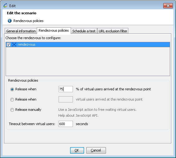 - Release settings allow defining density and timing of simultaneous requests. When enough of concurrent users reached the rendezvous point, they are “released” - let go forward and fire the requests.