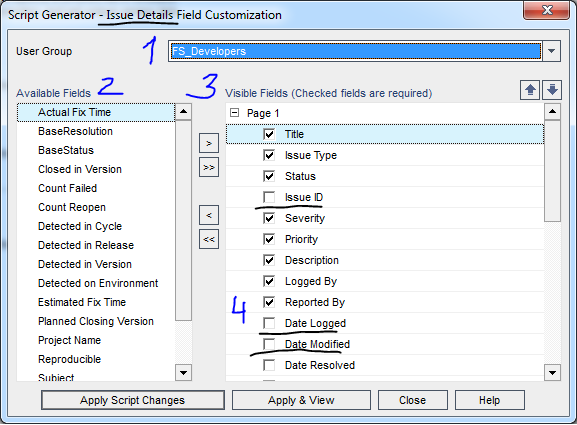 Issue ID and Date fields need not be checked because they’re automatically maintained.
