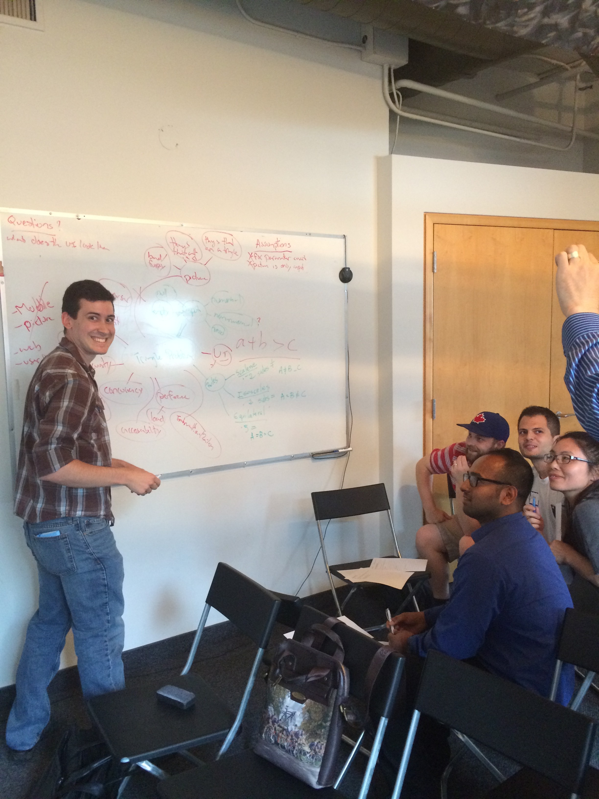 Team North had luck with leadership and initiative that emerged quickly and confidently. I loved the ease how they utilized the whiteboard to visualize their ideas and strategy points. Their test strategy planning deserves a special praise too: quick, concise, responsive to change, and well communicated. I noted how they dissected the requirements, used heuristic approach, and communicated their assumptions.