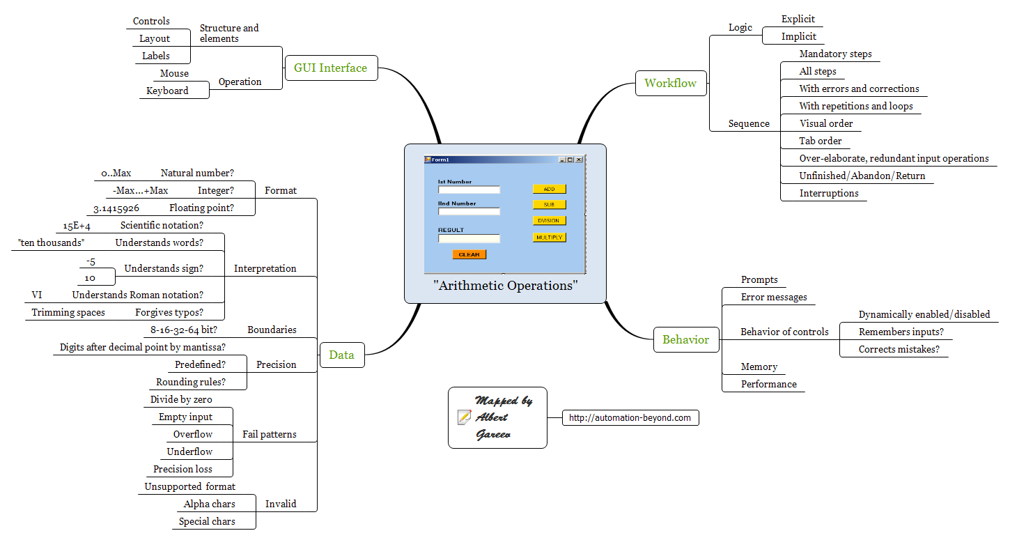 (Let’s assume that the program is intended for these arithmetic calculations - add, subtract, divide, multiply. Knowing the purpose of the product is critically important! What if this program is intended for training in black box testing? - Then each “bug” would be actually a valuable feature to discover.)