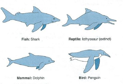 See how different species have very similar looks? - They were evolving to fit similar environment.