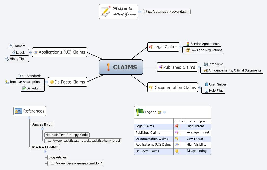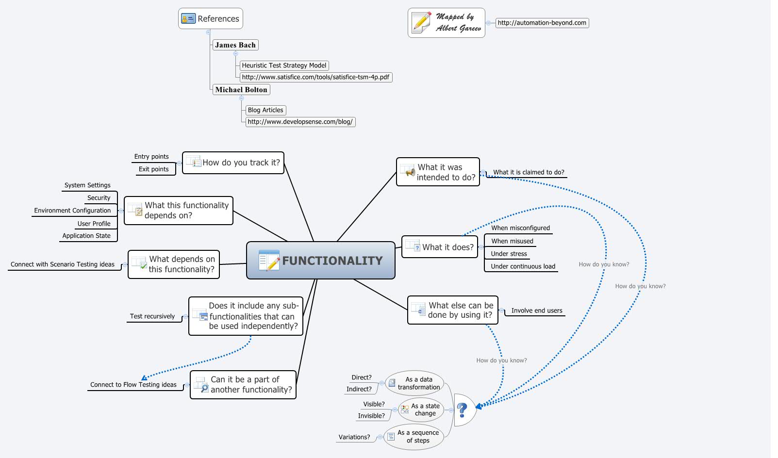 Heuristic Test Strategy Model is designed and copyrighted by James Bach. I mindmapped the concepts as a part of my own learning. All rights on contents still belong to Satisfice, Inc.